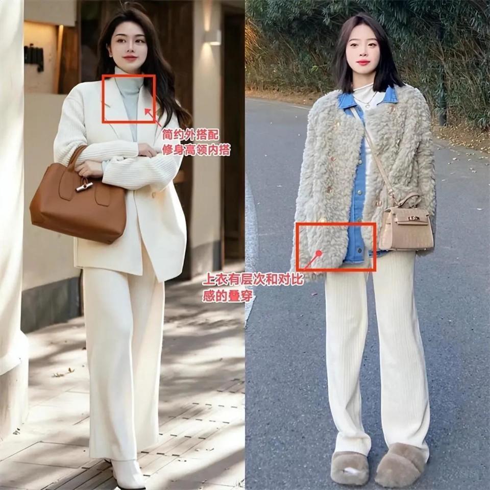 如果是在北方城市的话,可能选择一款外套来穿搭会更加保暖舒适,比如说一件西服外套内搭半高领的毛衣,下半身选择白色的西装阔腿裤,脚踩一双皮质的短靴,这样的穿衣造型简约大方,修身高领的内搭还能够让你的脖子更暖和。