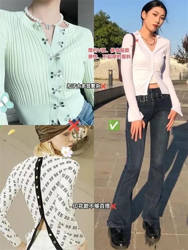 大家看下面这三套穿衣打扮对于身材的要求是非常高的,没有这种高挑纤瘦的身材,穿紧身款的针织开衫或者是上衣,很容易把你的小肚腩游泳圈给呈现出来,遮不住你的身上缺点,更不要说那种扣子很多,设计复杂,穿在身上很紧身的衣服款式了。