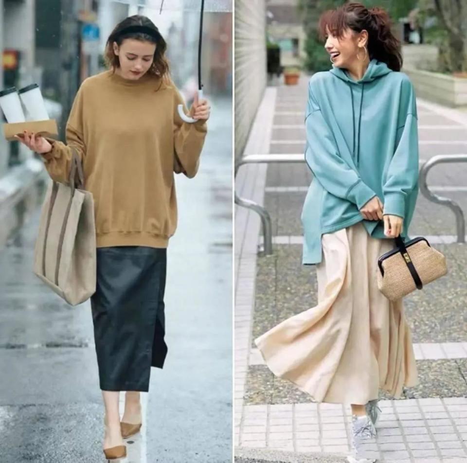 一选择衣服版型合身才是最关键的,如果你想穿宽松版的衣服,遮肉的情况下应该选择像下面这两件卫衣穿在身上,之后有一种垂坠感,能把腰间的赘肉和小肚腩藏起来,最佳下半身还可以选择直筒半身裙或者是伞状半身裙,这样的穿衣打扮遮肉显瘦,优雅大方。